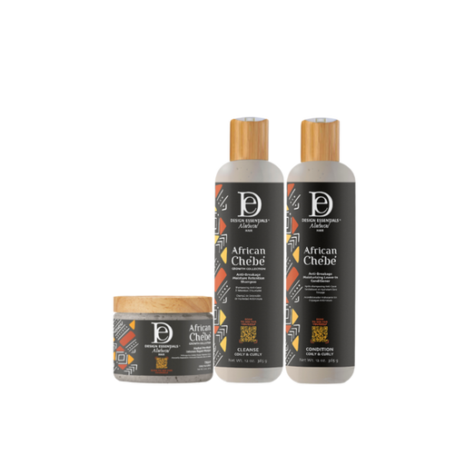 Design EssentialsRoutine fortifiante avec masque, shampoing et soin sans rinçage Ingrédients principaux Poudre de Chébé, Beurre de Karité Nourrissez vos cheveux...
